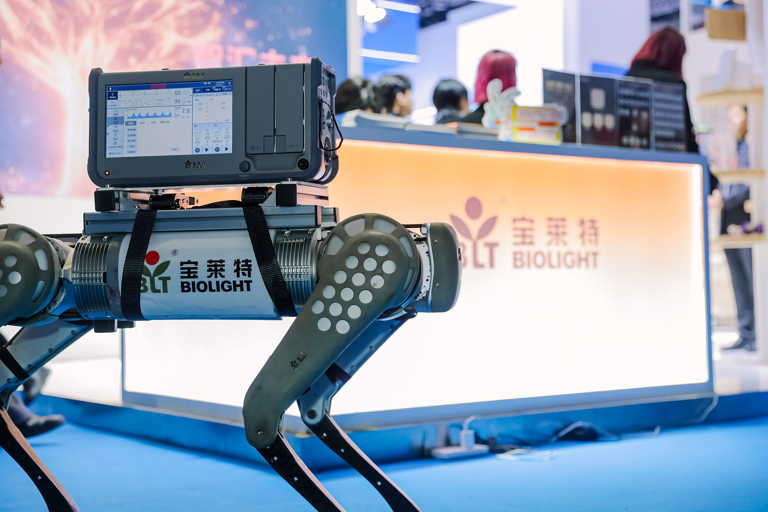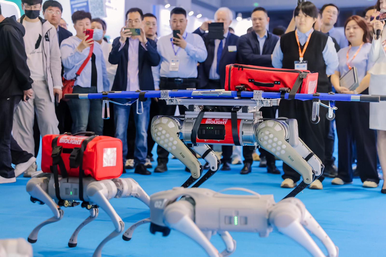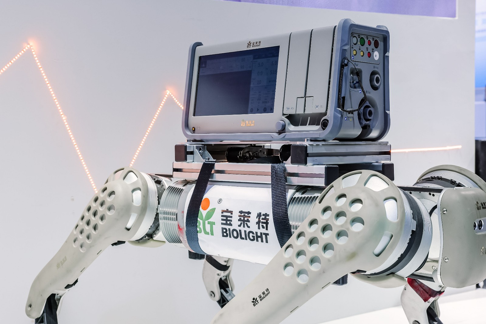 一竞技首日表现印证了这一趋势:四足机器人急救解决方案作为全场焦点,搭载转运监护仪、心电图机等核心设备,以展现了“设备随行、救治前置”的急救新范式。