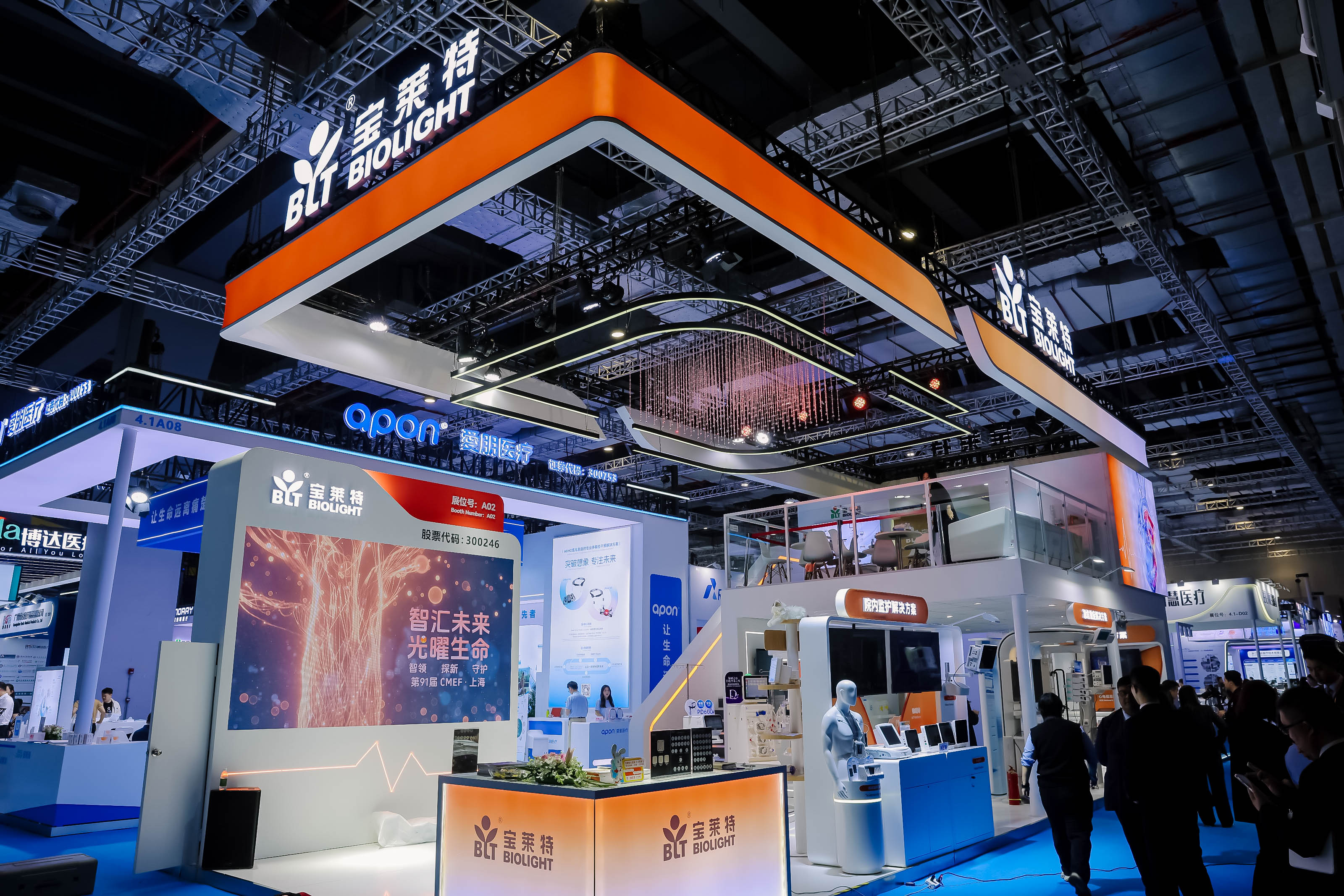 本届CMEF,一竞技展台以“追光橙”与“未来银”为主色调,构建出充满科技感的数字化医疗空间。橙色象征“生命之光”,传递温暖与活力;银色则代表精密医疗与前沿科技的融合。展台核心设计“生命之树”贯穿全场,寓意一竞技通过技术、产品与服务,串联起患者、医护与合作伙伴的共生生态,呼应品牌使命“厚德精工,守护健康”。