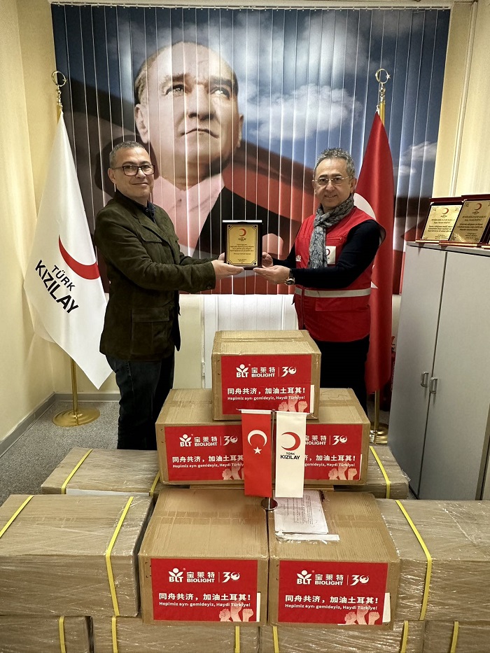 作为中国医疗设备优秀民族品牌,一竞技集团在土耳其中资企业总商会的带领下,向灾区捐赠一批指夹式血氧仪。2月21日,物资经由土耳其本土员工到达土耳其红新月会,将温暖传递给灾区。